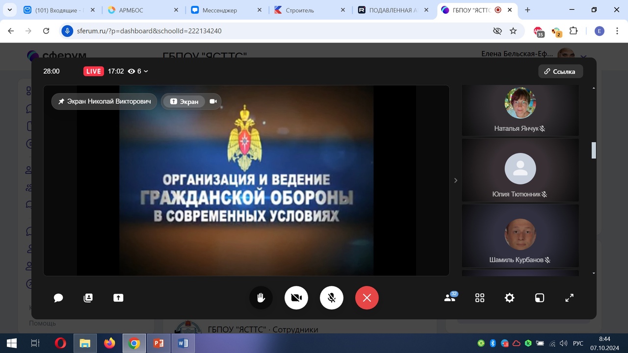 В ГОСУДАРСТВЕННОМ БЮДЖЕТНОМ ПРОФЕССИОНАЛЬНОМ ОБРАЗОВАТЕЛЬНОМ УЧРЕЖДЕНИИ «ЯСИНОВАТСКИЙ СТРОИТЕЛЬНЫЙ ТЕХНИКУМ ТРАНСПОРТНОГО СТРОИТЕЛЬСТВА» проведён Всероссийский открытый урок культуры безопасности, приуроченный ко Дню гражданской обороны Российской Федерации. Участие в мероприятии принял представитель ФГКУ «12 ПСО ФПС ГПС по Донецкой Народной Республике» Калуцкий Н.В.