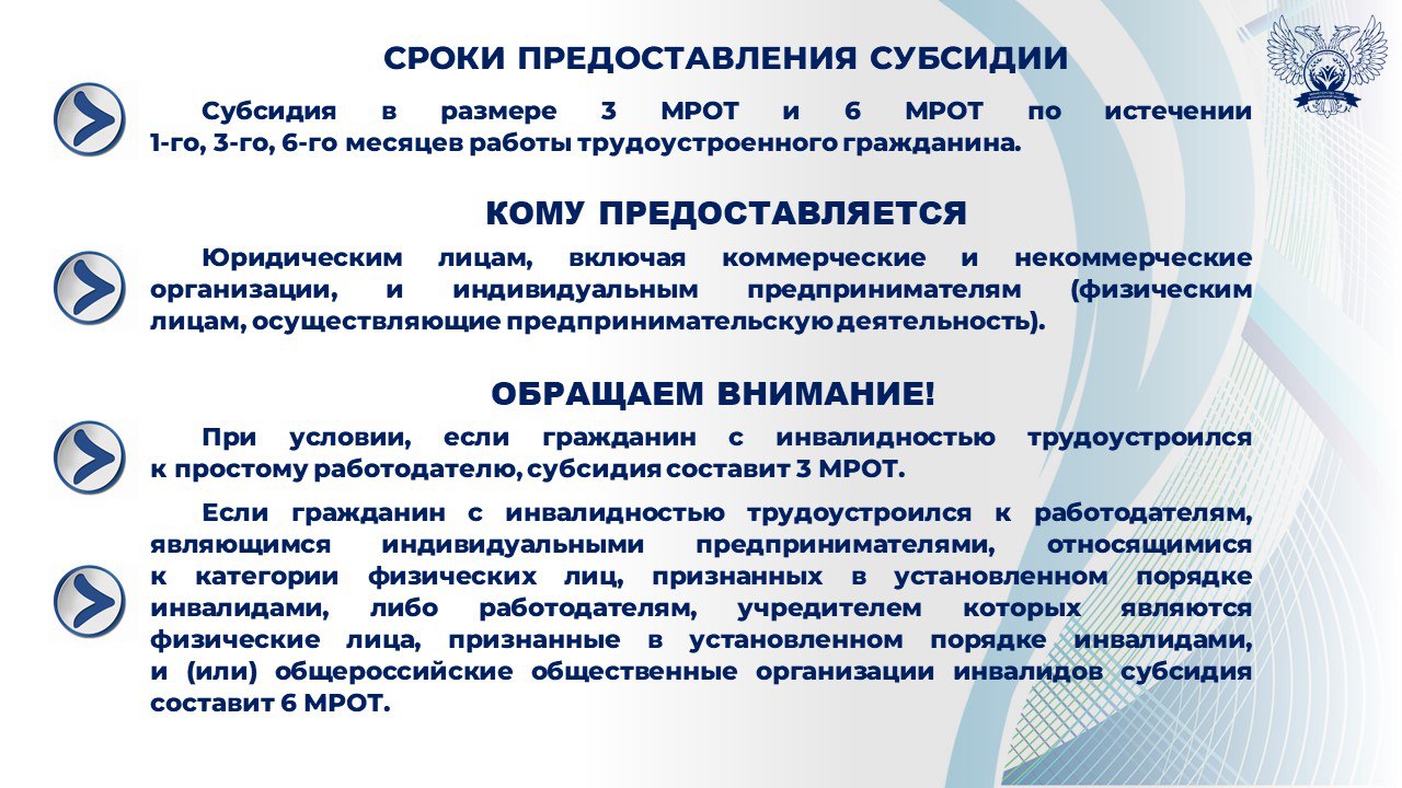 В Донецкой Народной Республике в 2026 году реализуется федеральный проект «Активные меры содействия занятости» национального проекта «Кадры», направленного, в том числе, на стимулирование найма отдельных категорий граждан.