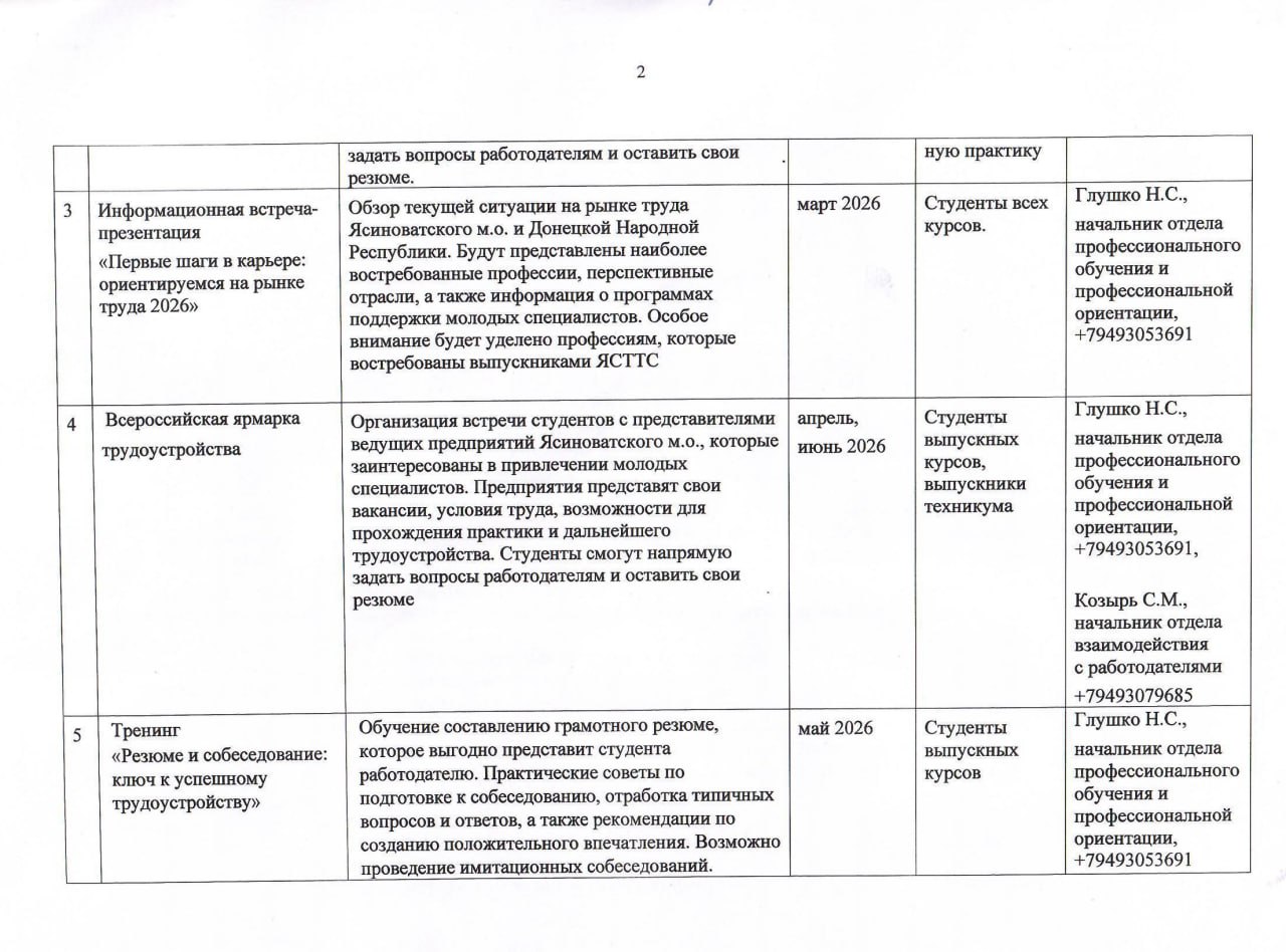 План работы Центра карьеры