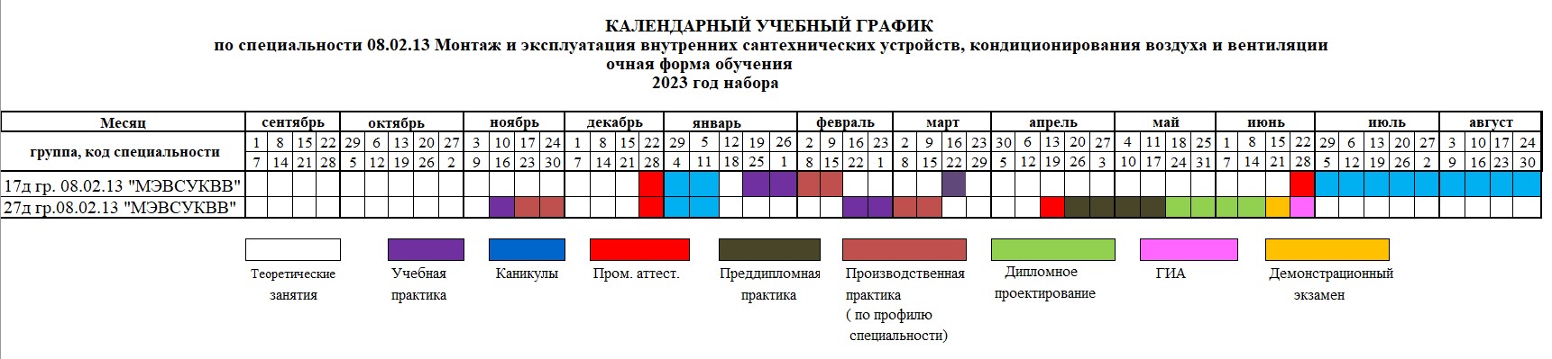 Образовательная программа среднего профессионального образования по специальности 08.02.13 Монтаж и эксплуатация внутренних сантехнических устройств, кондиционирования воздуха и вентиляции (год набора 2023 на базе ООО)